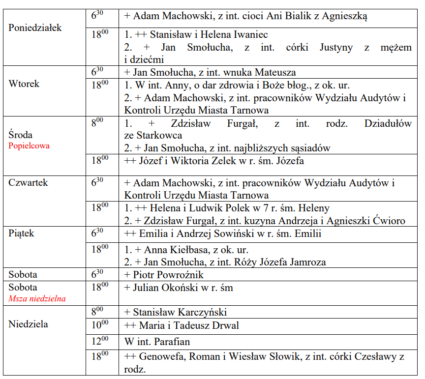 Intencje Mszy św. odprawianych od 27 kwietnia do 3 maja 2026 r.