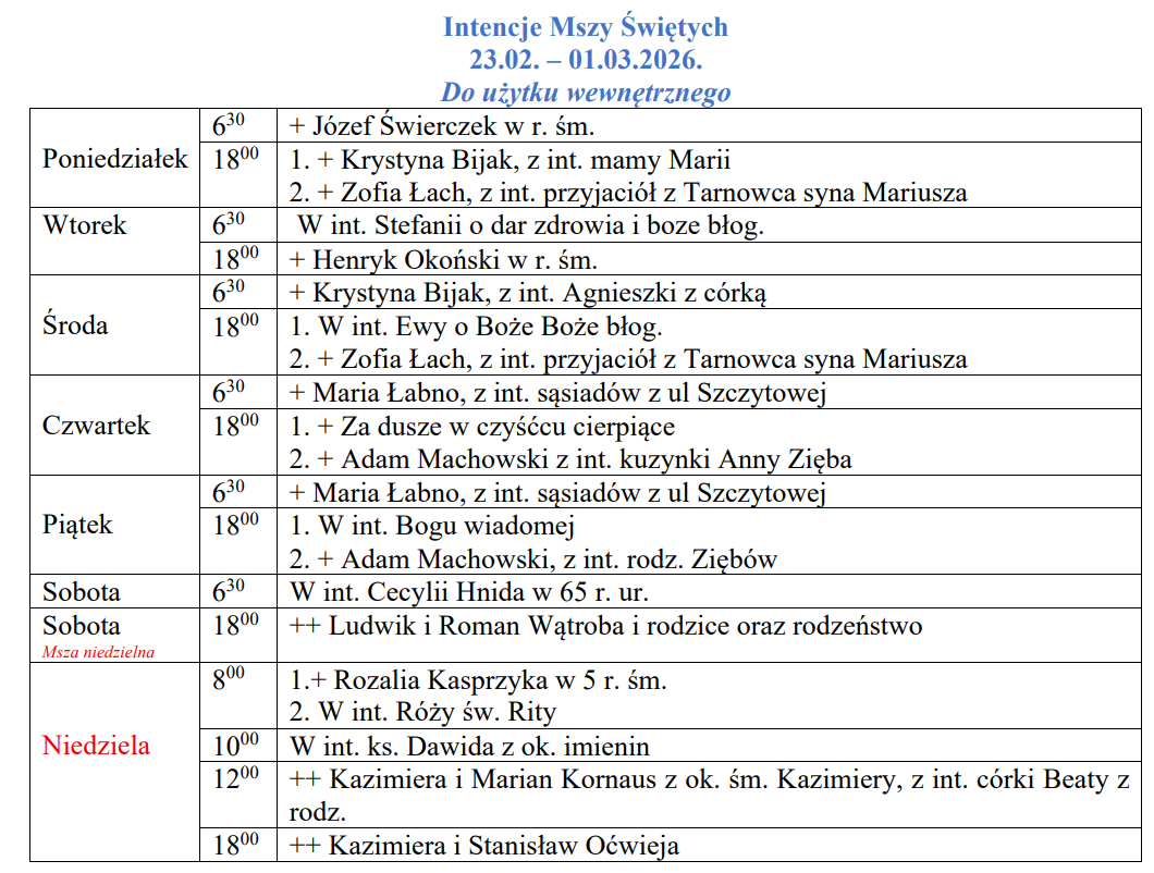 Intencje Mszy św. odprawianych od 27 kwietnia do 3 maja 2026 r.