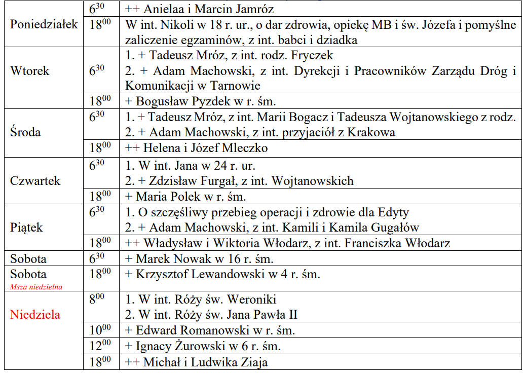 Intencje Mszy św. odprawianych od 27 kwietnia do 3 maja 2026 r.